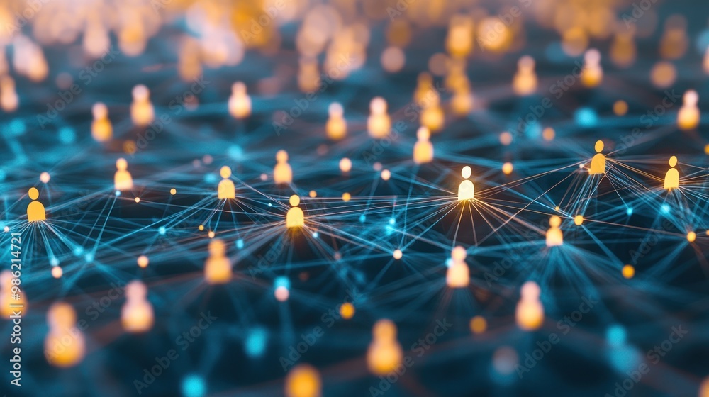 The watermark will not be included on Sticker.: Abstract network with glowing connections -