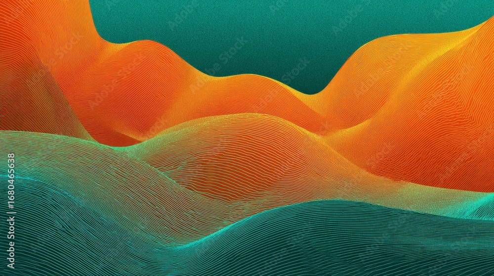 The watermark will not be included on Sticker.: Abstract orange and teal gradient background with smooth wavy lines, flowing colorful design for mod