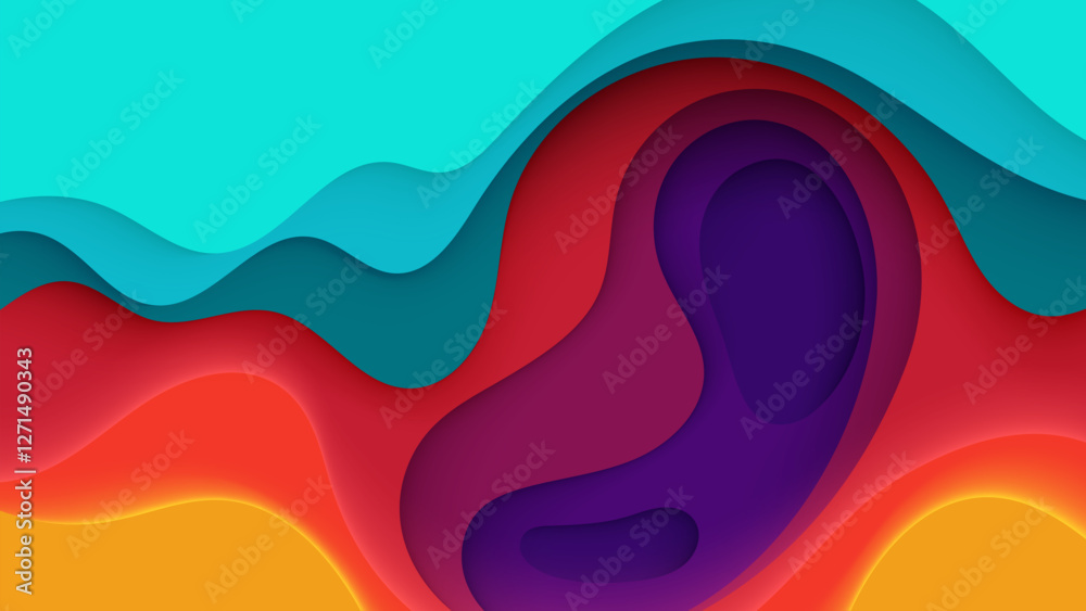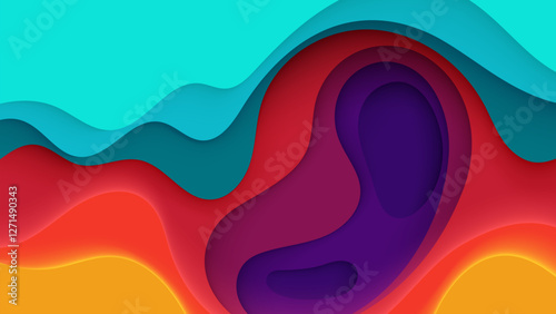 The watermark will not be included on Sticker.: Abstract papercut background colorful wavy shape cutout design vector