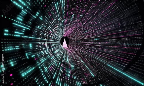 Sticker : Abstract pink and cyan glowing data stream tunnel