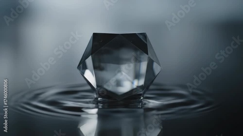 The watermark will not be included on Sticker.: Abstract slow motion impact of a gleaming hexagonal prism hitting a metallic surface, creating a sub