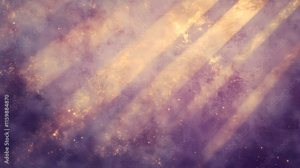 The watermark will not be included on Sticker.: Abstract soft golden rays spreading across a muted lavender background with glowing nebula textures