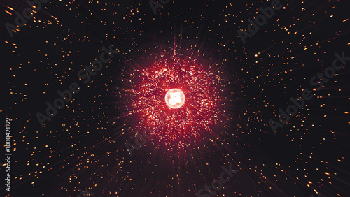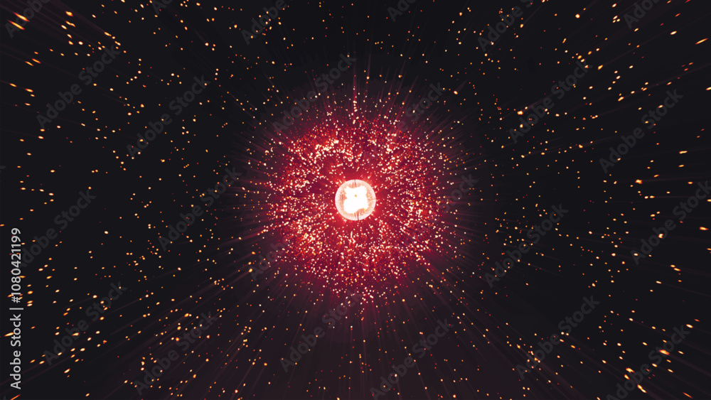 The watermark will not be included on Sticker.: Abstract space background on scientific astronomy theme - dark background with stars and light in the