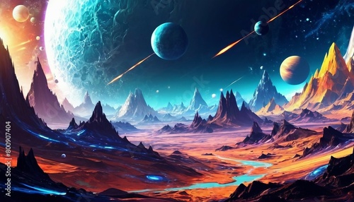 Abstract space exploration background with cosmic landscapes and sci-fi elements - Sticker