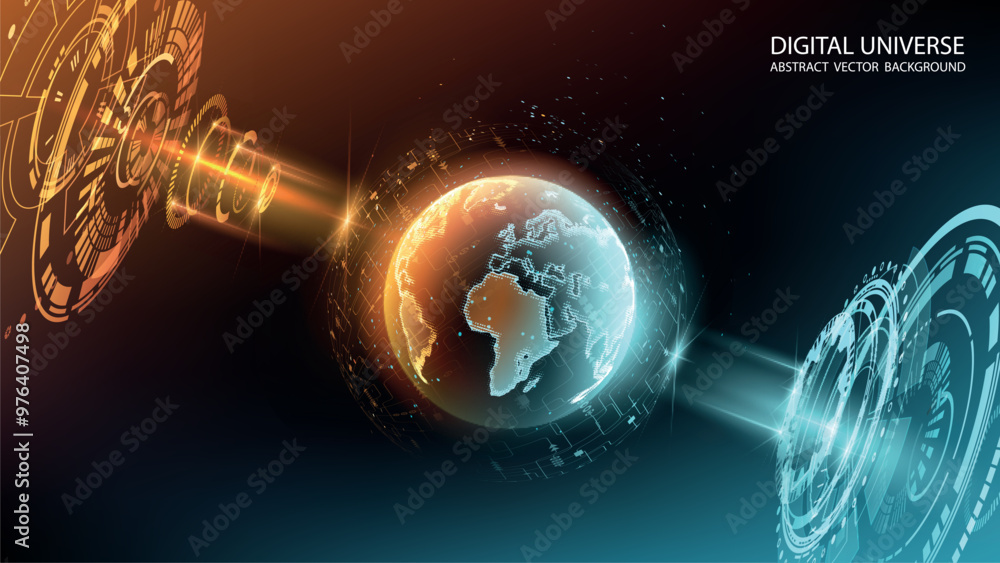 The watermark will not be included on Sticker.: Abstract tech vector background - hologram of planet earth - global map - science and modern innovative