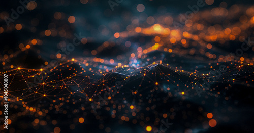 The watermark will not be included on Sticker.: Abstract technology background with illuminated network connections and interconnected nodes -