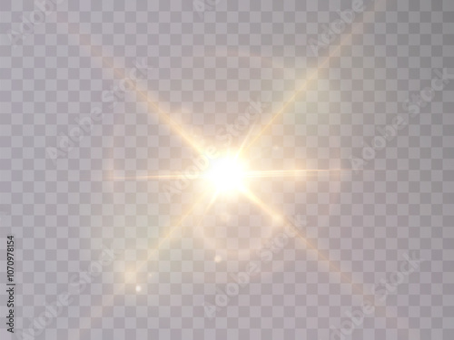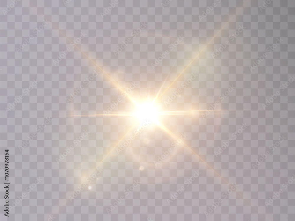 The watermark will not be included on Sticker.: Abstract yellow flash of light - glowing golden effect with glare - isolated on transparent background