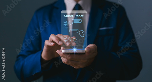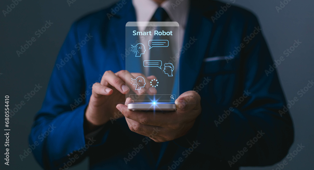 Ai chat, artificial technology concept, business person user laptop open chat with command prompt toSticker