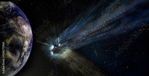 Sticker : Alien ufo in a meteorite crashes to earth - elements of this image furnished by nasa -