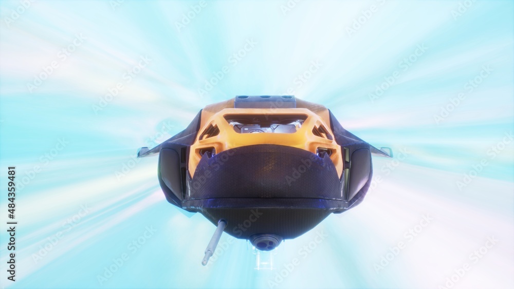 The watermark will not be included on Sticker.: Aliens fly through a wormhole in an uncharted part of the universe in their sci-fi spaceship - the co