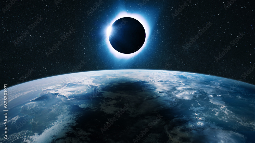 Sticker : Amazing eclipse from space - planet earth with the moon and a solar eclipse - solar eclipse - the moon