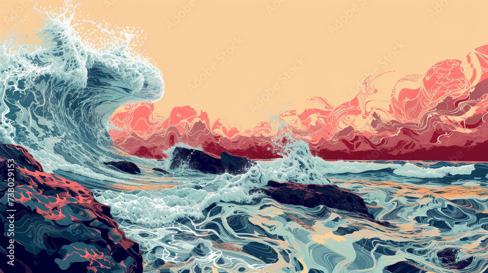 An abstract representation of the meeting point between the sea and the shoreSticker