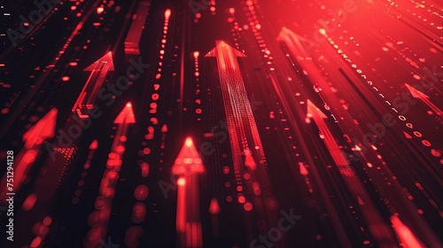 The watermark will not be included on Sticker.: An arrow graph rising up a red digital background