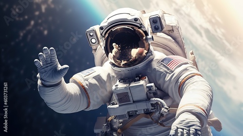 The watermark will not be included on Sticker.: An astronaut during a spaceflight in outer space - generative ai