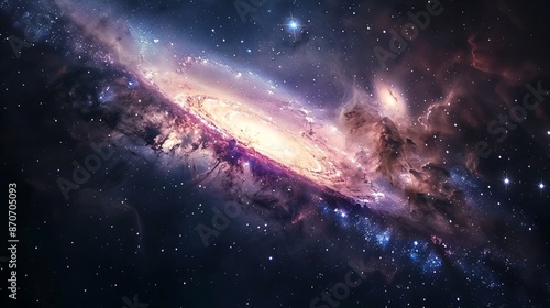 Sticker an expansive view of a galaxy with a vivid nebula and stars in a universe aura atmosphere