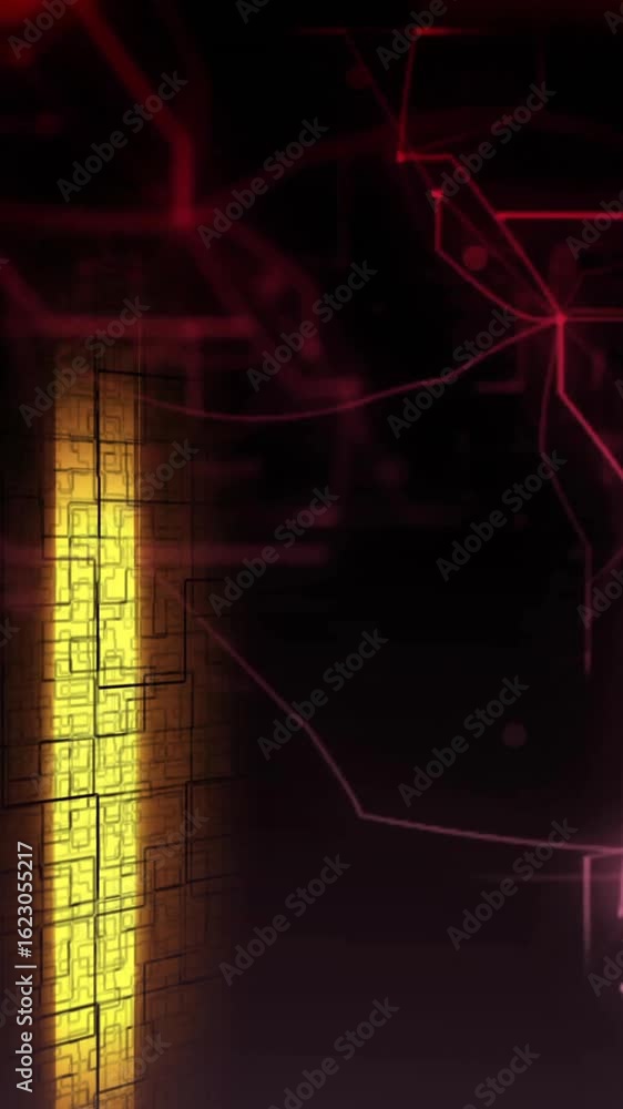 The watermark will not be included on Sticker.: Animation of glowing light trails floating over red network of connections on black background