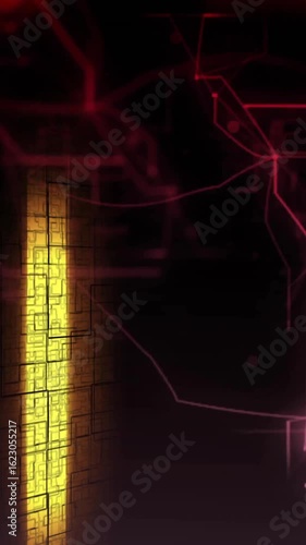 Sticker : Animation of glowing light trails floating over red network of connections on black background