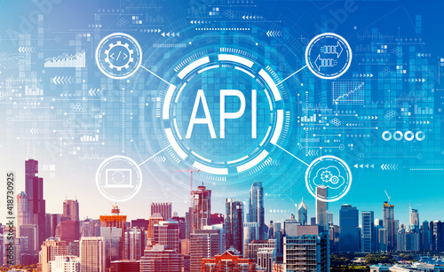 Sticker : Api - application programming interface concept with downtown chicago cityscape skyscrapers