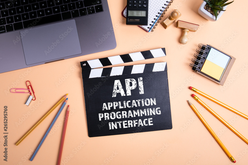 Sticker : Api application programming interfacemovie - information technology and business concept - clapper on