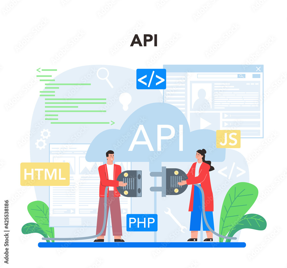 The watermark will not be included on Sticker.: Application programming interface concept set - software development