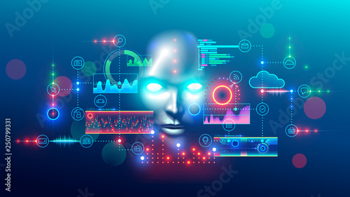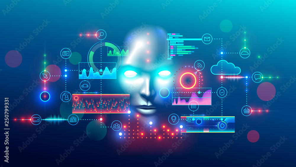 Sticker artificial intelligence abstract concept banner. digital mind analyzes data information. ai connecti - Stickers Sticker artificial intelligence abstract concept banner. digital mind analyzes data information. ai connecti - Stickers