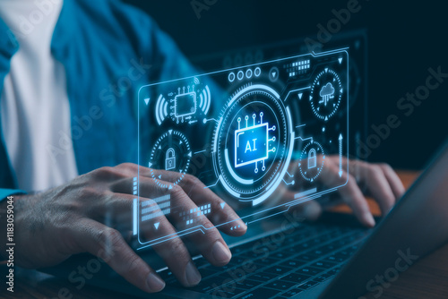 The watermark will not be included on Sticker.: Artificial intelligence machine learning technology, man using a laptop computer, generations someon