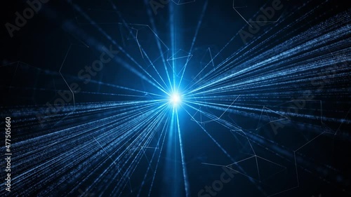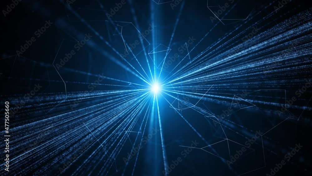 Sticker artistic optical fibers animation with computer data travel on dark blue background.