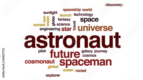 The watermark will not be included on Sticker.: Astronaut animated word cloud, text design animation -