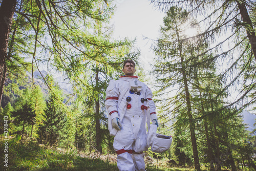 The watermark will not be included on Sticker.: Astronaut exploring a new planet - searching for a new home for humanity - concept about science and n