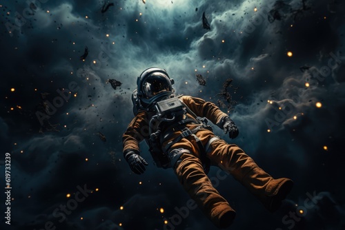 The watermark will not be included on Sticker.: Astronaut exploring other worlds in outer space