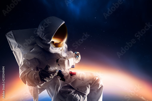 The watermark will not be included on Sticker.: Astronaut exploring outer space