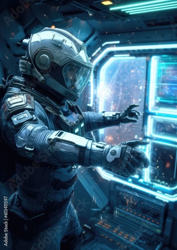 The watermark will not be included on Sticker.: Astronaut exploring space and universe