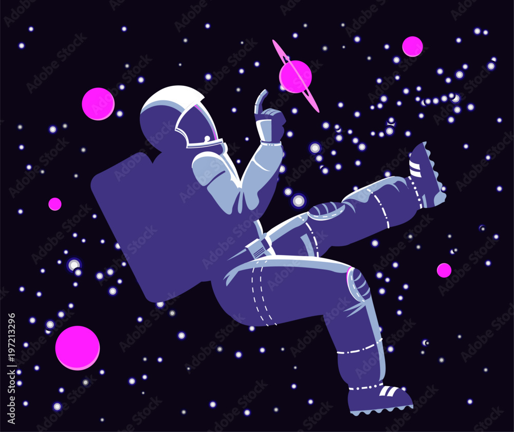 The watermark will not be included on Sticker.: Astronaut in open space with stars and planets on background - vector illustration -