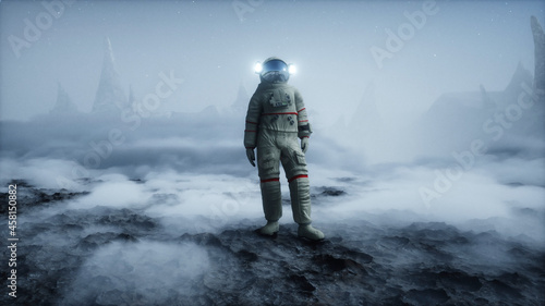 The watermark will not be included on Sticker.: Astronaut on alien planet - mars surface - space travel - 3d rendering -