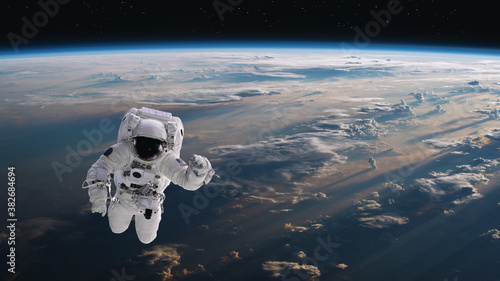 Astronaut walking in space with earth background - elements of this image furnished by nasaSticker