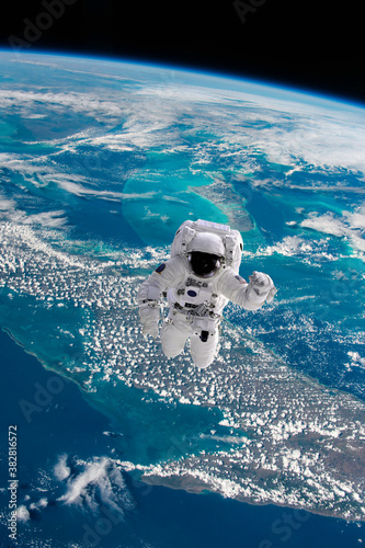 Astronaut walking in space with earth background - elements of this image furnished by nasaSticker