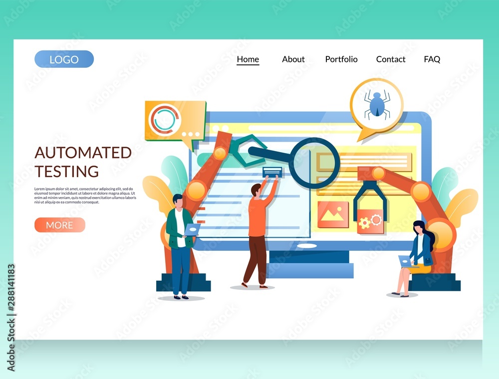 The watermark will not be included on Sticker.: Automated testing vector website landing page design template