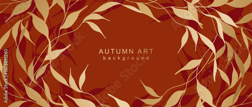 Sticker : Autumn fall art background - abstract banner with frame of golden branches and leaves - vector illustr