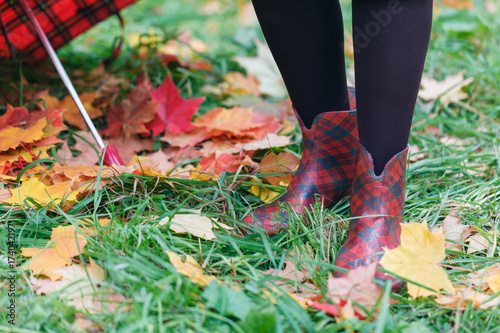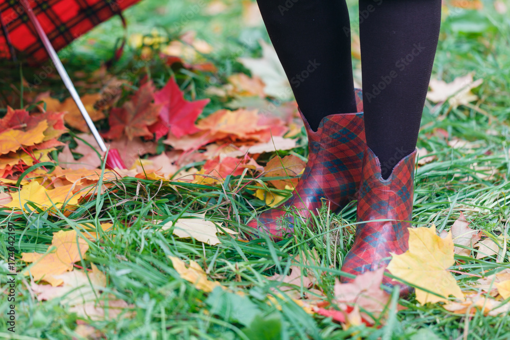 The watermark will not be included on Sticker.: Autumn picnik with pakk with red maple leaves