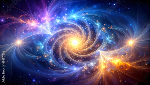 Sticker awe inspiring abstract background of colorful spiral galaxy nebula in deep space. universe full of g