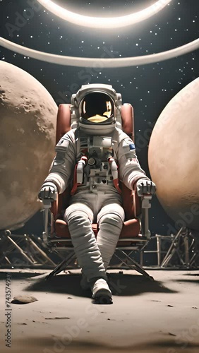 Back view of lunar astronaut resting in a chair on moon backgroundSticker
