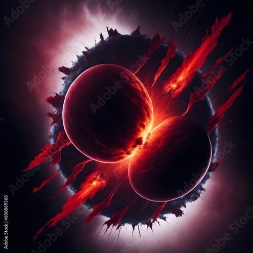 The watermark will not be included on Sticker.: Background explosion collision of two planets in the sky (black and red)