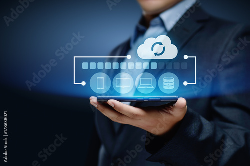 The watermark will not be included on Sticker.: Backup storage data internet technology business concept