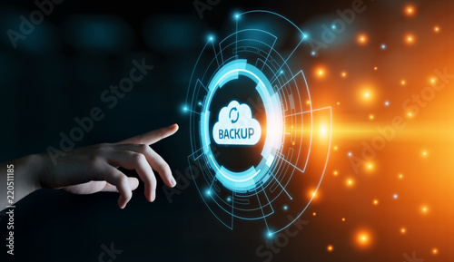 The watermark will not be included on Sticker.: Backup storage data internet technology business concept