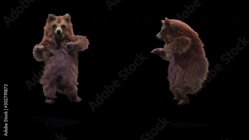 The watermark will not be included on Sticker.: Bear dance cg fur 3d rendering animal realistic cgi vfx animation loop composition 3d mapping cartoo
