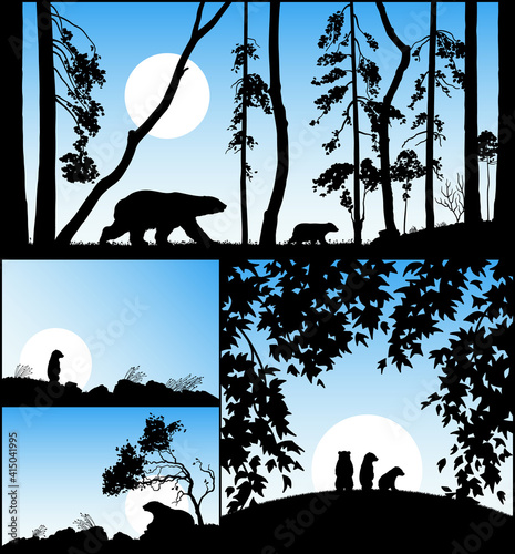 Sticker bears family. endangered animal isolated silhouette. mother and child