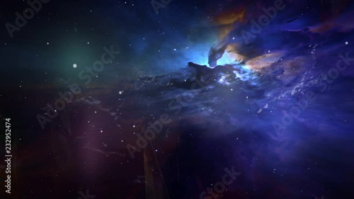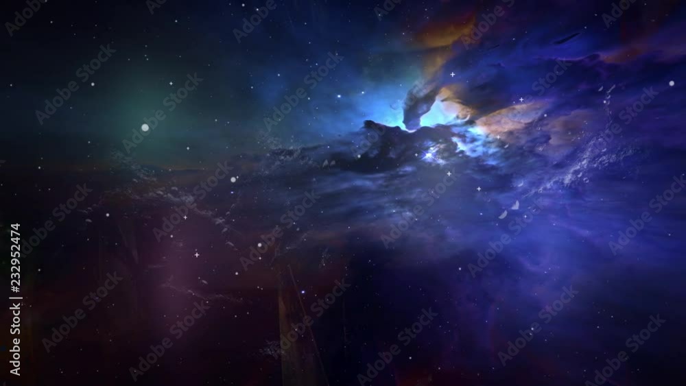 Sticker : Beautiful background of the night sky with stars, parallax animation of rotation dust clouds and sta