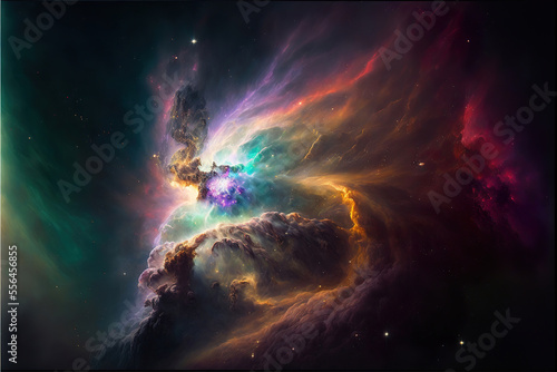 Beautiful colorful abstract supernova explosion nebula in space with stars, made with generative aiSticker