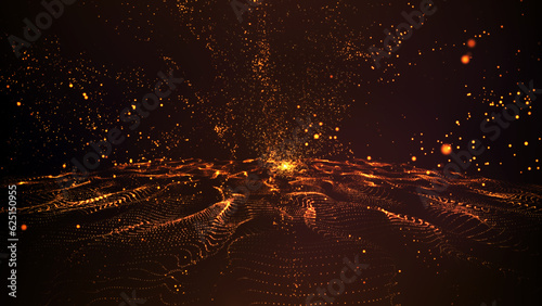 The watermark will not be included on Sticker.: Beautiful golden galaxy particles wave with light abstract background with sparkling dust particles -