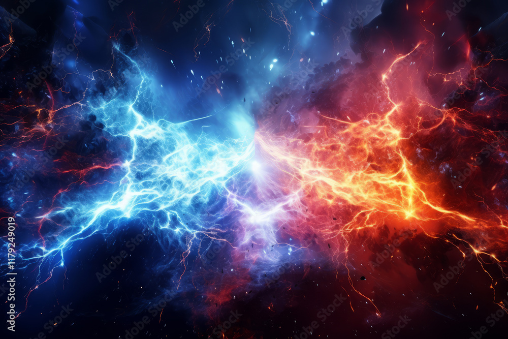 Sticker : Beautiful powerful colored lightnings and the flash from the collision